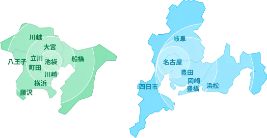 首都圏支店・名古屋支店を中心に、関東近郊・中部エリアのサポートをしています。エリア外の方もぜひご相談ください。