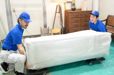 - 養生材を剥がした後、物を移動させる際は注意が必要です。気が緩み、天井、壁、または第三者に物をぶつけないよう、常に周囲を確認しながら作業してください。