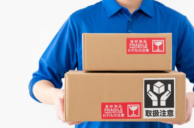 このような梱包には、「取扱注意」や「われもの注意」のシールが貼られていることがあります。もし貼られていない場合でも、慎重にゆっくりと持ち上げたり、下ろしたりするようにしましょう。