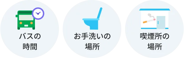 開始時間まで待機しますので、その間に「入職の準備」「帰りのバスの時間」「お手洗い・喫煙所等必要な場所の確認」を行ないましょう。